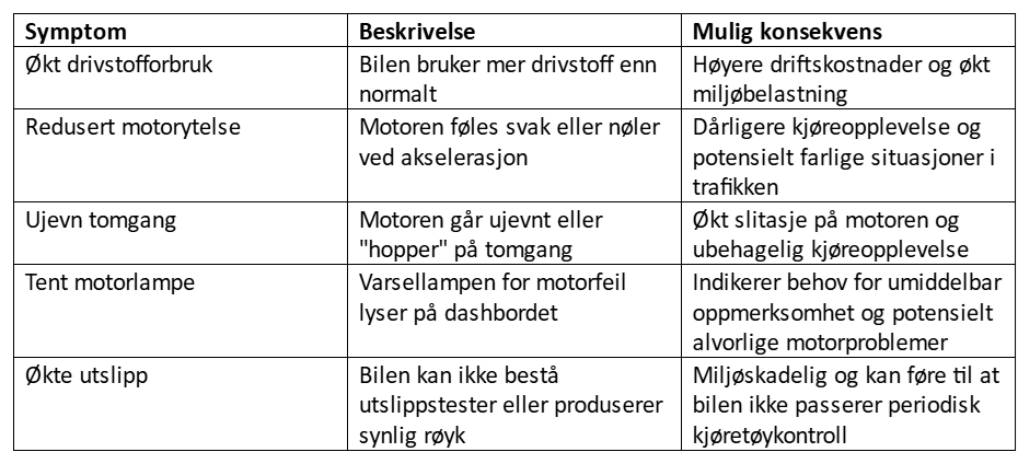 - Økt motorytelse: Optimal forbrenning gir bedre motorytelse og jevnere gange.